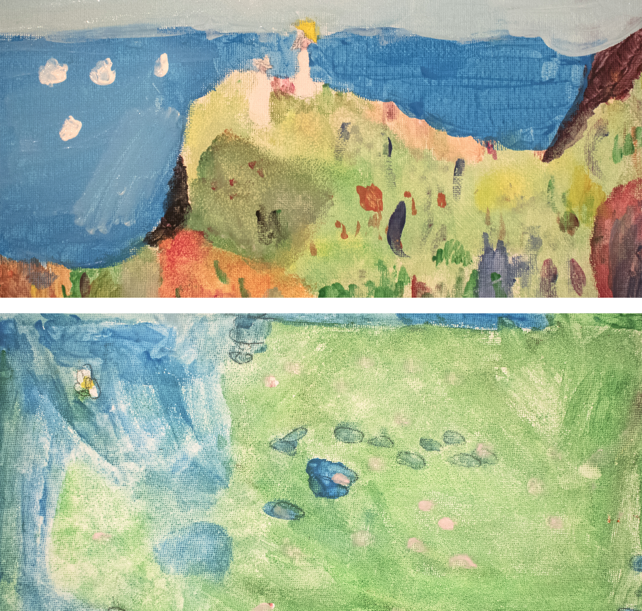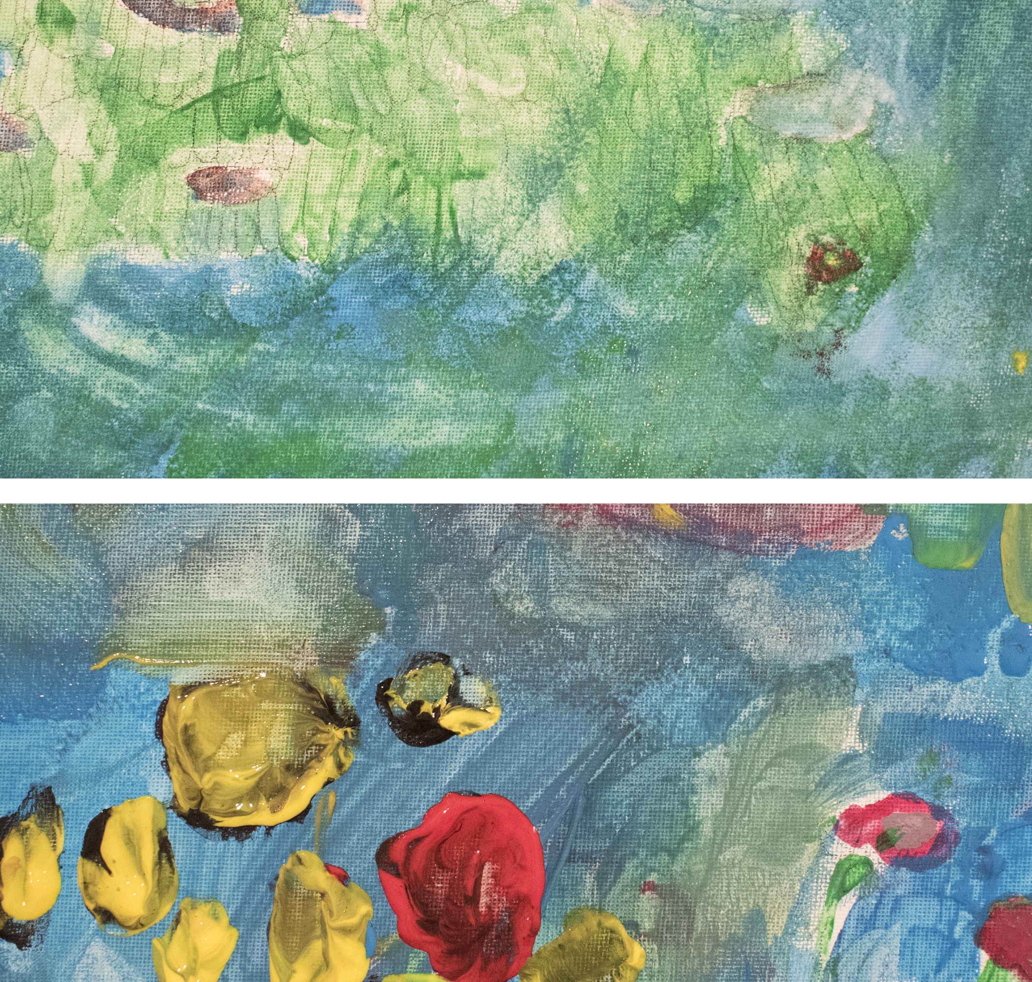 La pittura del grande Monet viene introdotta ai bambini con il libro Piacere di conoscerti, Monsieur Monet che svela il “dietro le quinte” dei dipinti più famosi dell’artista, compresi quelli realizzati nella sua magnifica villa a Giverny dove fece costruire il laghetto delle ninfee e un ponticello ricoperto da archetti di glicine (che tanto ricordava lo stile della stampe giapponesi, di cui era collezionista). Ad ogni bambino viene poi consegnata una tela cartonata della Maimeri (formato 20×30 cm), delle immagini che riproducevano i paesaggi più celebri di Monet, colori primari e secondari a base di tempera, pennelli e spugne per colorare campiture più ampie. I bambini sono liberi di esplorare la materia del colore, effettuando più prove e creando tinture diverse attraverso la combinazione dei colori.